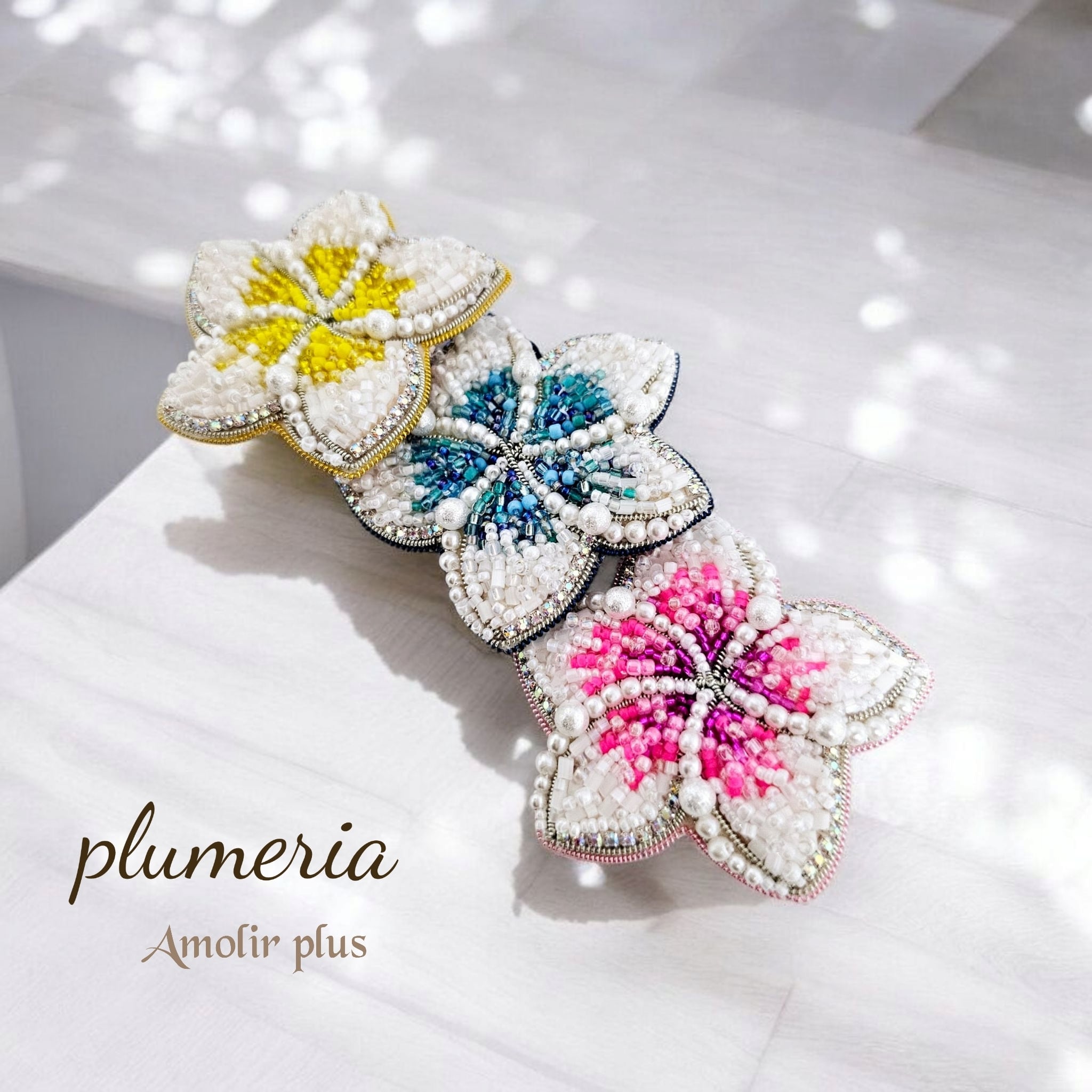 ☆プルメリアのブローチ ビーズ刺繍☆