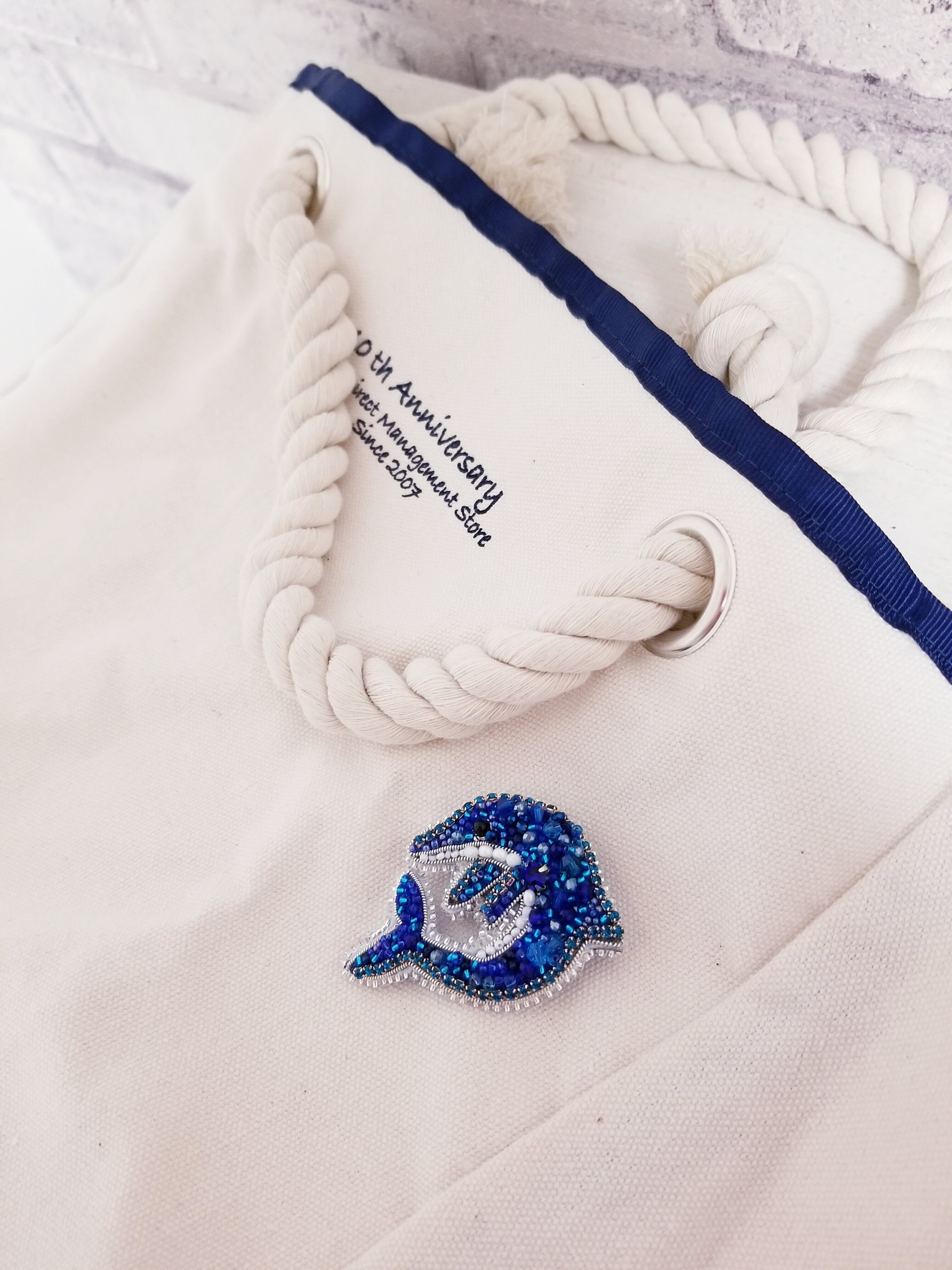刺繍ブローチ イルカのビーズ刺繍ブローチ 刺繍