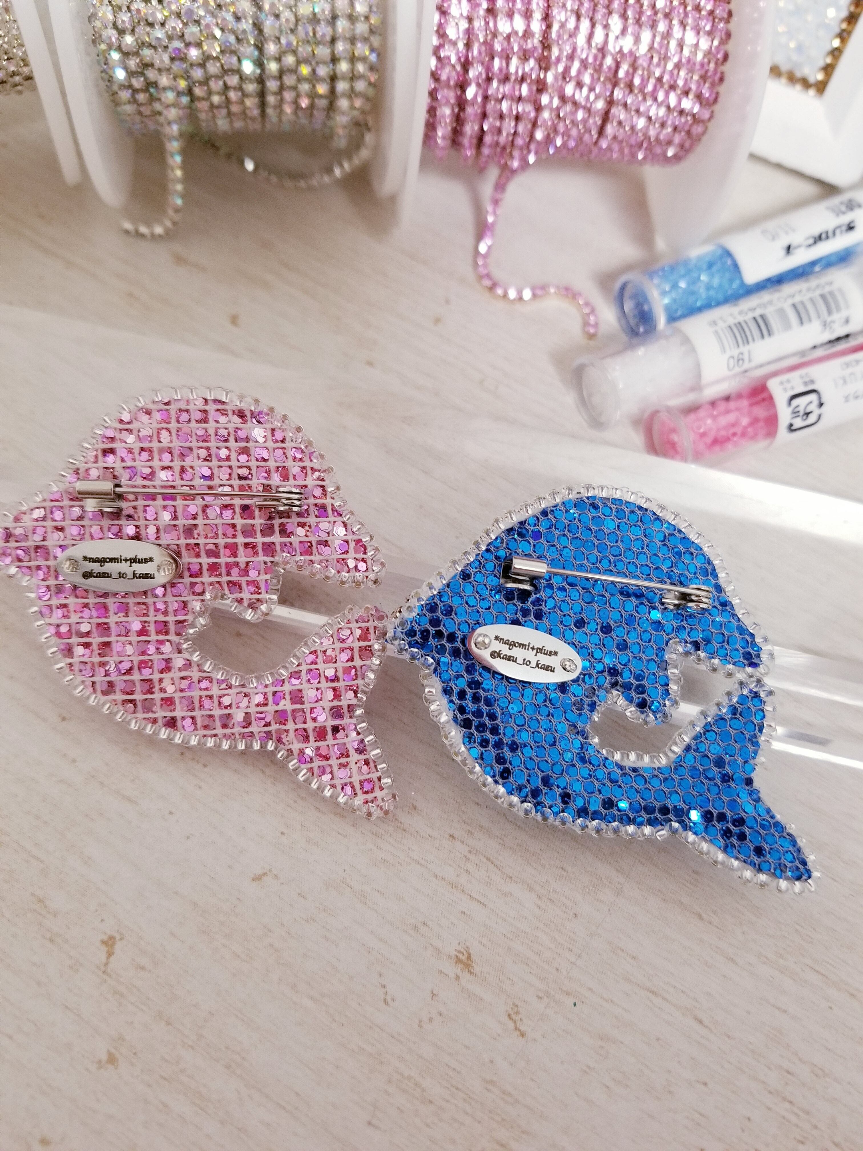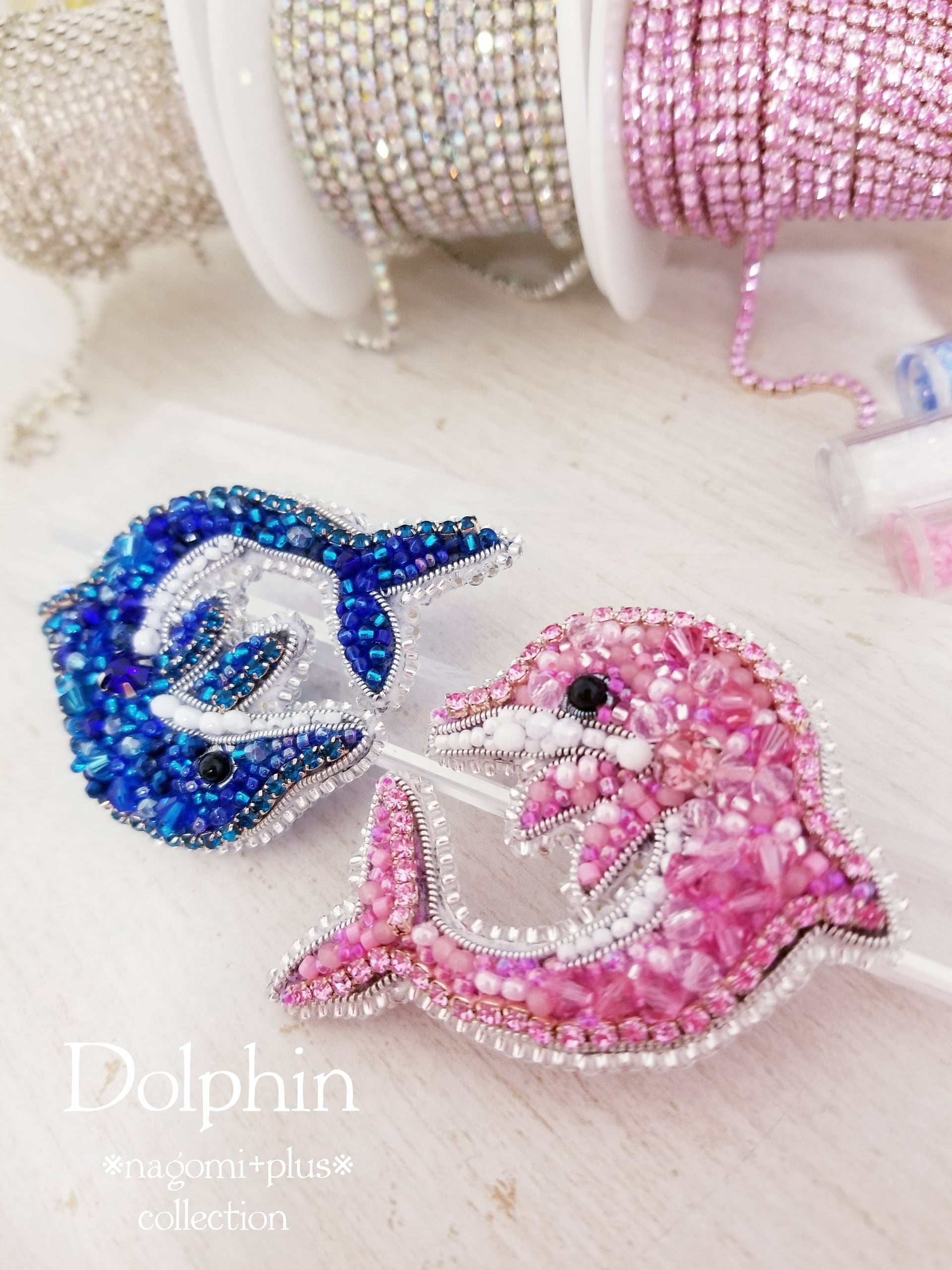 ブルーとピンクのイルカのブローチ作ってみました(*^^*)